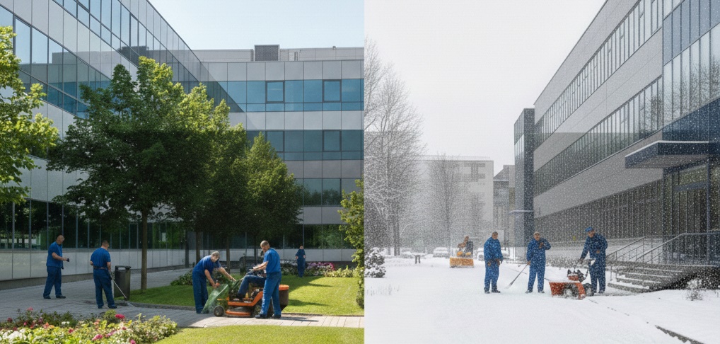 Zajištění komplexní celosezónní (zimní + letní) venkovní údržby (obchodních domů, office center a okolí firem.